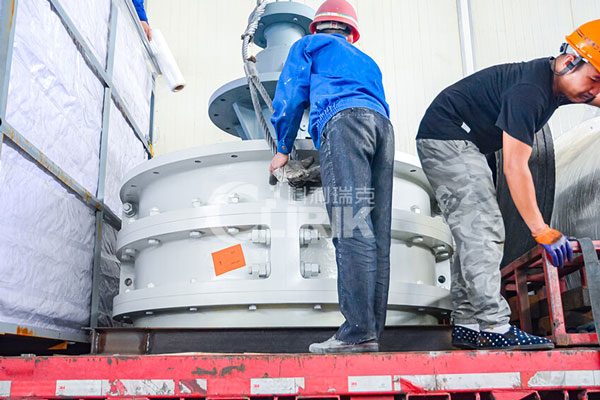 大塊物料經破碎機破碎到所需粒度(30mm)后,由提升機將物料送至儲料斗,再由皮帶機將物料均勻定量連續地送入主機磨室磨粉機內進行研磨。粉磨后的物料被風機氣流送入選粉機進行分級。在選粉機葉輪的作用下,不符合細度要求的物料落入磨室內重新碾磨;合格的物料則經空氣斜槽進入旋風集粉器內,進行分離收集,經排料裝置排出即為成品粉體。整個過程屬于閉路循環系統,并在正負壓狀態下運行,配備以脈沖除塵器,保證了生產現場的干凈、整潔。