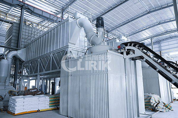 粉磨后的膨潤土粉經選粉機進行分級,不合格的粉子被選粉機分級后返回磨機主機重新粉磨。